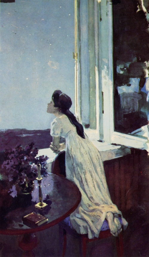 «Внезапно Набоков прервал лекцию, прошел, не говоря ни слова, по эстраде к правой стене и выключил три лампы под потолком. Затем он спустился по ступенькам — их было пять или шесть — в зал, тяжело прошествовал по всему проходу между рядами, провожаемый изумленным поворотом двух сотен голов, и молча опустил шторы на трех или четырех больших окнах... Зал погрузился во тьму. ...Набоков возвратился к эстраде, поднялся по ступенькам и подошел к выключателям. “На небосводе русской литературы, – объявил он, – это Пушкин!” Вспыхнула лампа в дальнем левом углу нашего планетария. “Это Гоголь!” Вспыхнула лампа посередине зала. “Это Чехов!” Вспыхнула лампа справа. Тогда Набоков снова спустился с эстрады, направился к центральному окну и отцепил штору, которая с громким стуком взлетела вверх: “Бам!” Как по волшебству в аудиторию ворвался широкий плотный луч ослепительного солнечного света. “А это Толстой!” – прогремел Набоков».